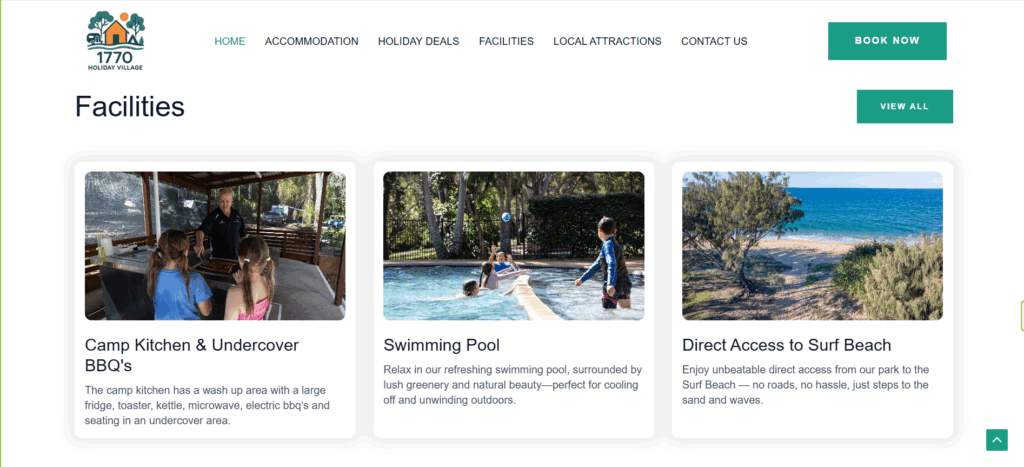 1770 Holiday Village is a popular holiday accommodation provider in Agnes Water, Queensland, Australia, offering a range of vacation rental options in a beachfront setting. With a focus on eco-tourism and family-friendly experiences, the site aims to attract visitors seeking quality holiday stays along the scenic Queensland coast.